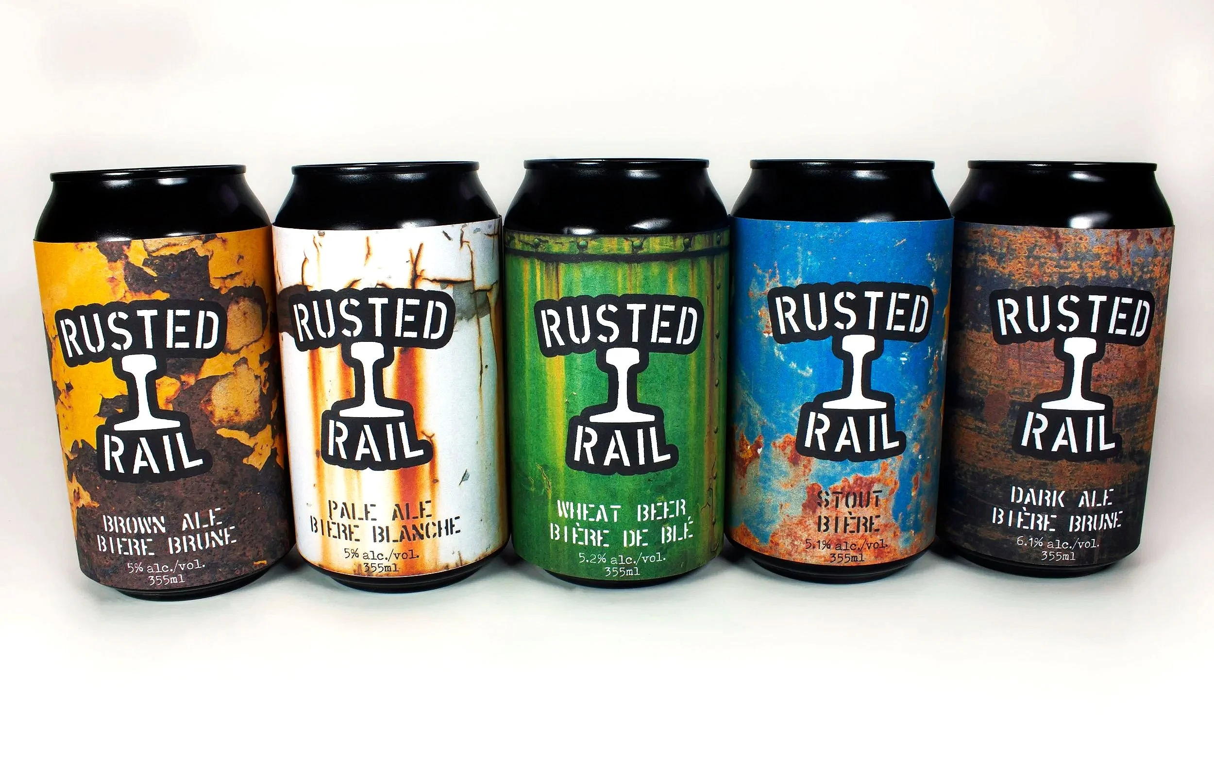 Rusted Rail: packaging for beer company with physical labeling and packaging created. Rust texture photos for backgrounds taken by me. Logo, Packaging, Labels View fullsize View fullsize View fullsize View fullsize